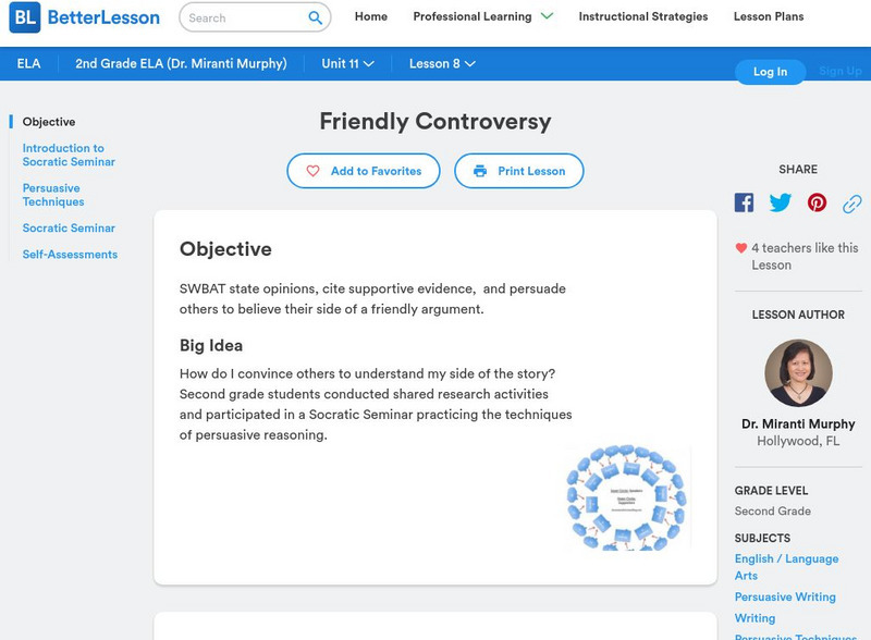 How do I convince others to understand my side of the story? Second grade students conducted shared research activities and participated in a Socratic Seminar practicing the techniques of persuasive reasoning.