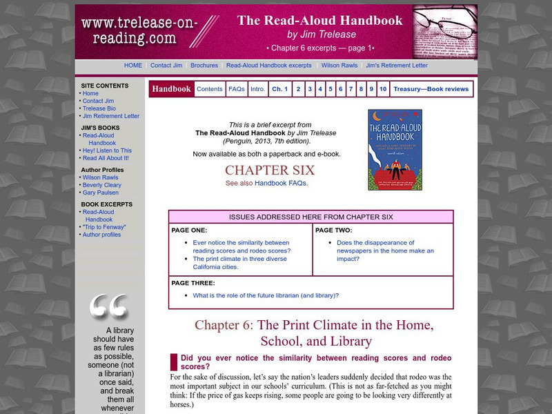 Trelease on Reading: "The Read Aloud Handbook," Ch.6
