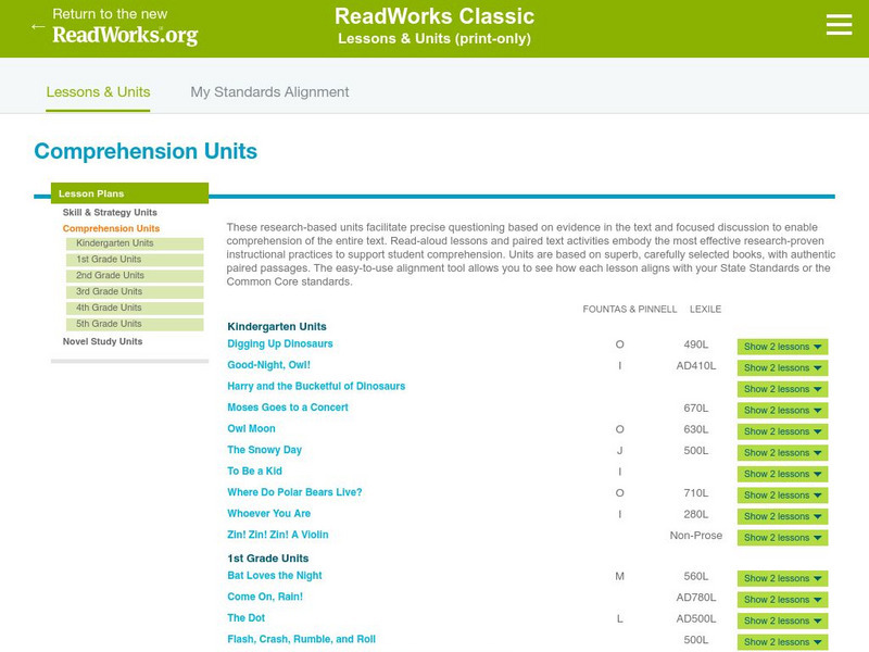 [Free Registration/Login Required] Reading comprehension units for grades kindergarten through fifth grade are available on this site. Units consist of read aloud questions and paired passages. Multiple Lexiles are shown, along with...