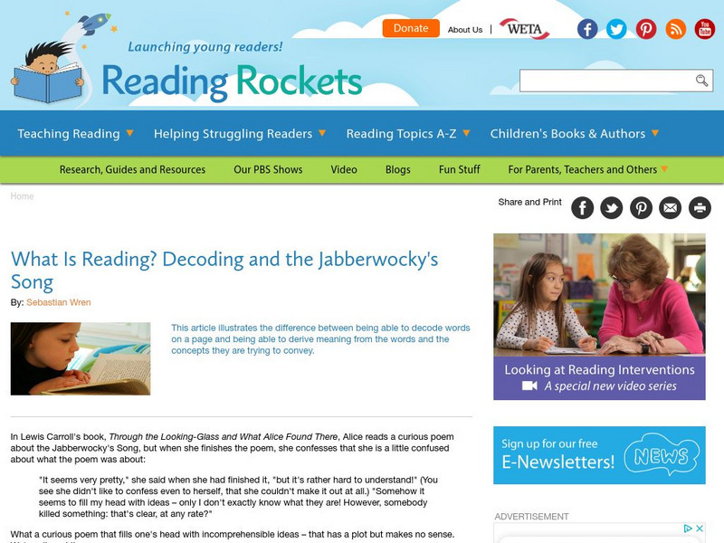 Reading Rockets: Decoding and the Jabberwocky's Song