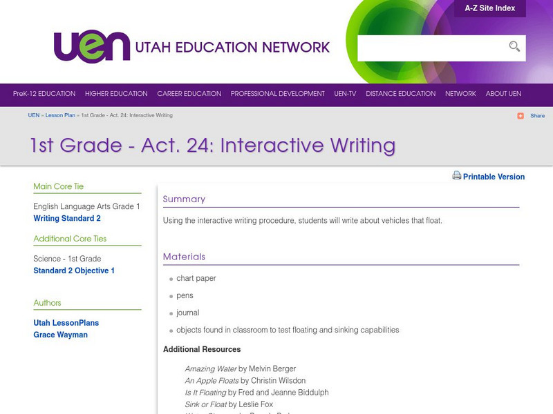 In this instructional activity, students will listen to nonfiction books about items that sink and float. Students will participate in filling in words to fill in a teacher-created chart that is connected to the information. Students...