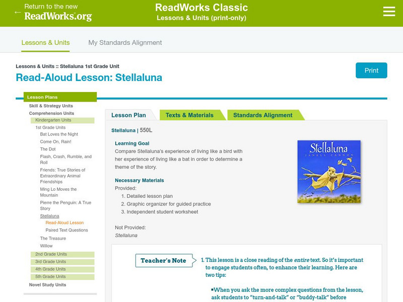 Compare Stellaluna's experience of living like a bird with her experience of living like a bat. Included in this lesson are a detailed lesson plan, a graphic organizer, and a student worksheet.