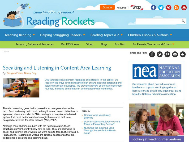 Reading Rockets: Speaking and Listening in Content Area Learning