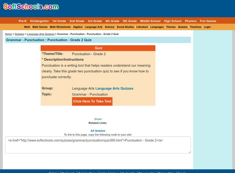 Soft Schools: Grammar: Punctuation: Grade 2 Quiz
