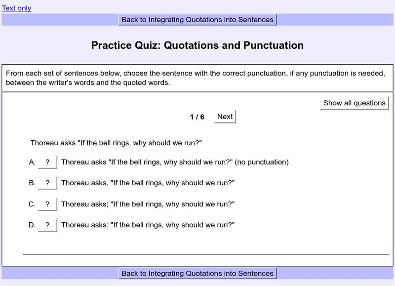 Practice your understanding of quotations and punctuation by taking this 6 question quiz.