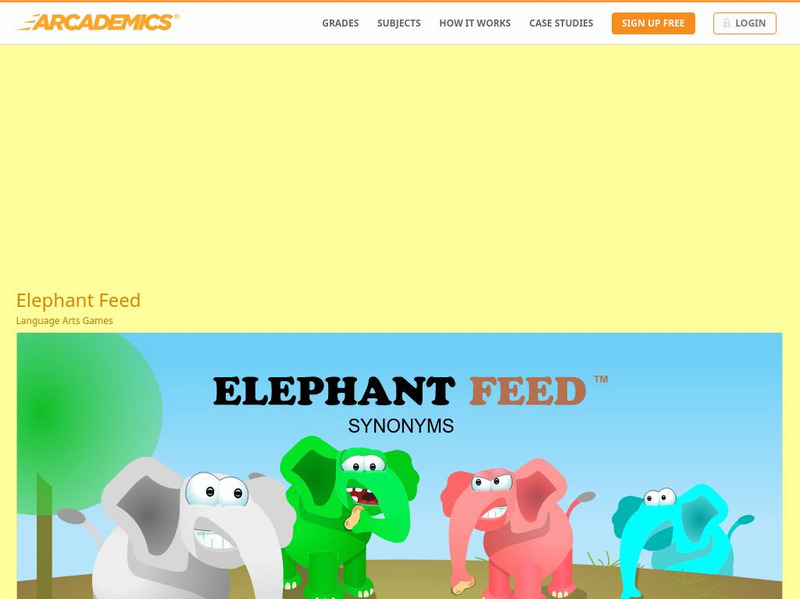 Determine which word is the synonym of the given word then choose it to feed the elephant.