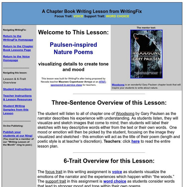 For this lesson students will write a poem based on the descriptors in one of Gary Paulson's novels.