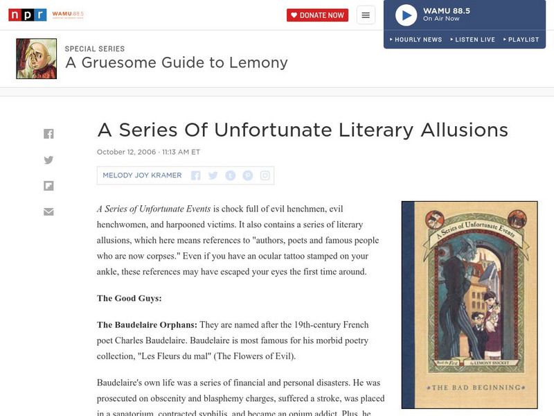 Can you spot the many literary allusions made in the famous "Series of Unfortunate Events" books? This article points them out and explains them.