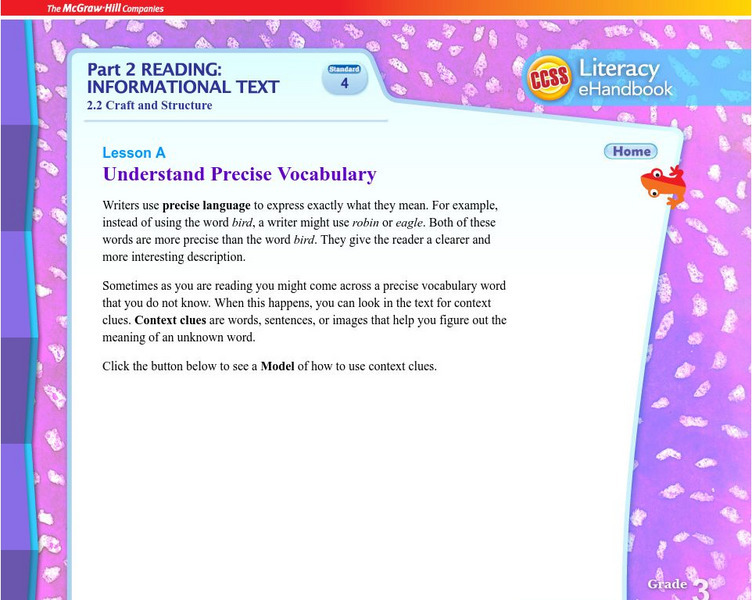 Mc Graw Hill: Part 2 Reading Informational Text: Understand Precise Vocabulary