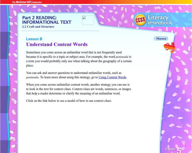 Mc Graw Hill: Part 2 Reading: Informational Text: Understand Content Words