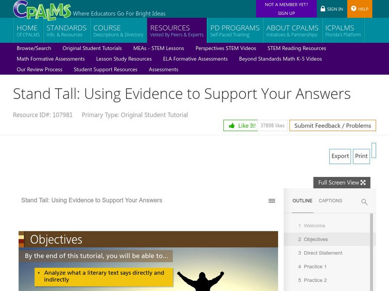 Cpalms: Stand Tall: Using Evidence to Support Your Answers