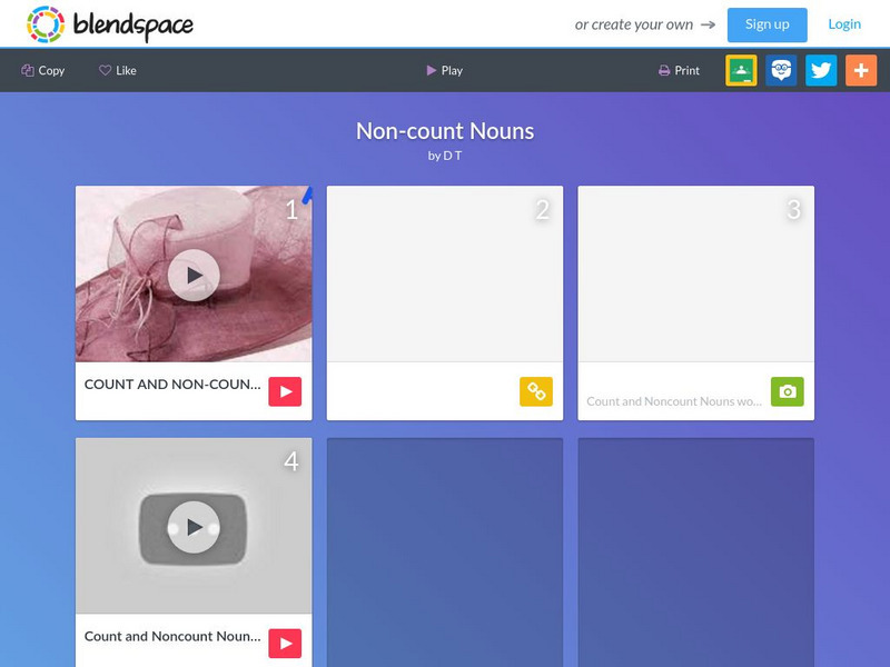 A four-part learning module with links to videos, a website, and a chart to use while learning about non-count nouns.