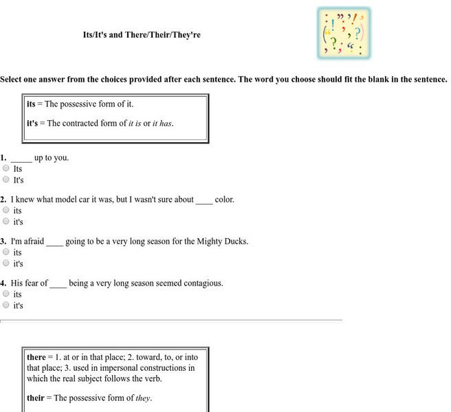 Guide to Grammar and Writing: Its & It's & There, Their & They're Quiz