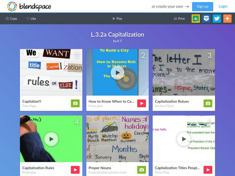 An eleven-part learning module with links to websites, images, videos, and texts about capitalization.