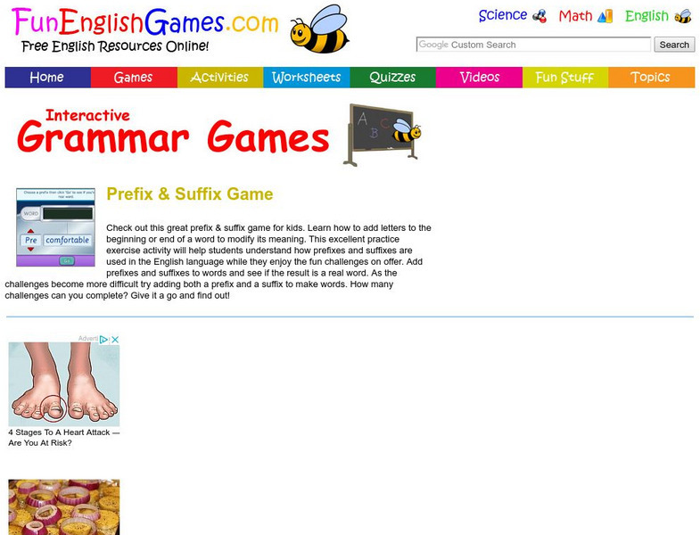 Fun English Games: Interactive Grammar Games: Prefix & Suffix Game