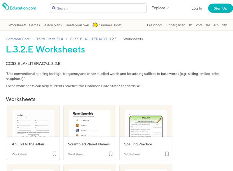 [Free Registration/Login Required] A site with links to 5 worksheets that can be downloaded and printed for student use while building skills with standard L.3.2.E: Use conventional spelling for high-frequency and other studied words and...