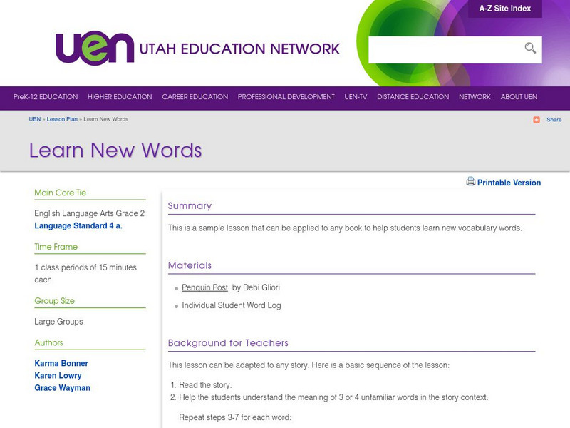 Uen: Lesson Plan: Learn New Words