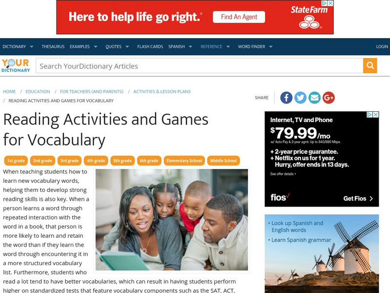 This article focuses on developing vocabulary through reading activities and games. The more a person reads, the better their vocabulary; this article provides ideas for teachers and parents to promote more reading for fun.