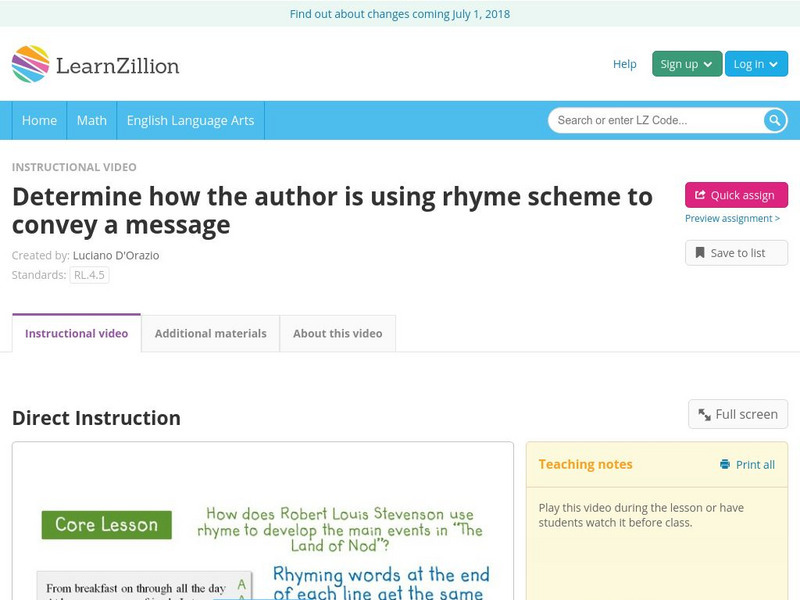Learn Zillion: Determine How the Author Is Using Rhyme Scheme to Convey a Message