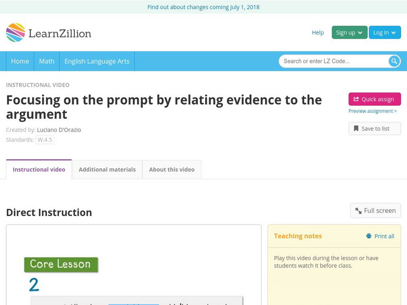 Learn Zillion: Focusing on the Prompt by Relating Evidence to the Argument