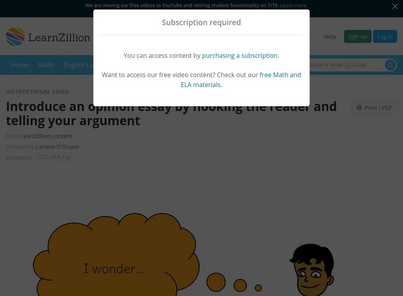 Learn Zillion: Introduce an Opinion Essay by Hooking the Reader