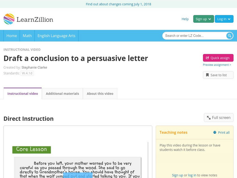 Learn Zillion: Draft a Conclusion to a Persuasive Letter
