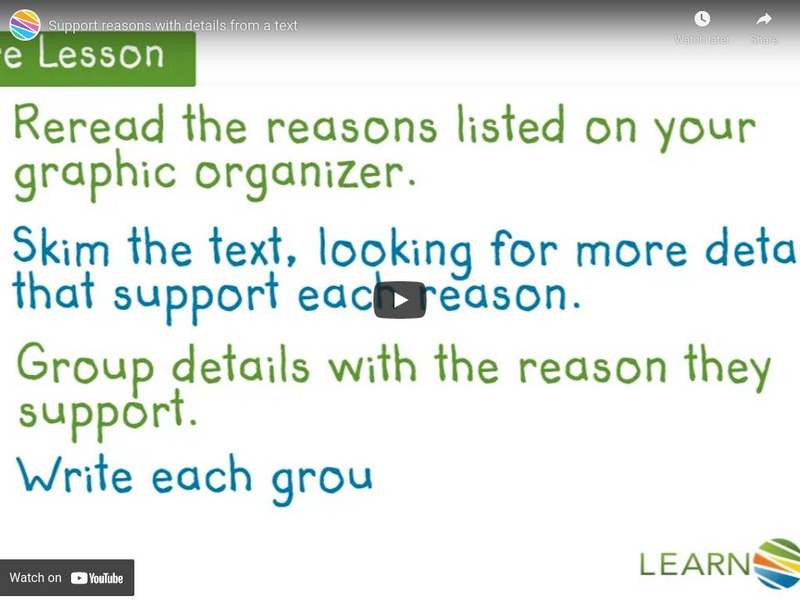 In this lesson, you will learn how to support reasons with details in an opinion piece by rereading and grouping related ideas together. Login gives access to a slideshow as well. [7:04]