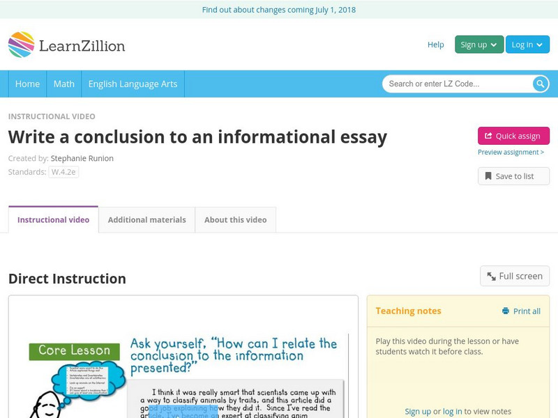 Learn Zillion: Write a Conclusion to an Informational Essay