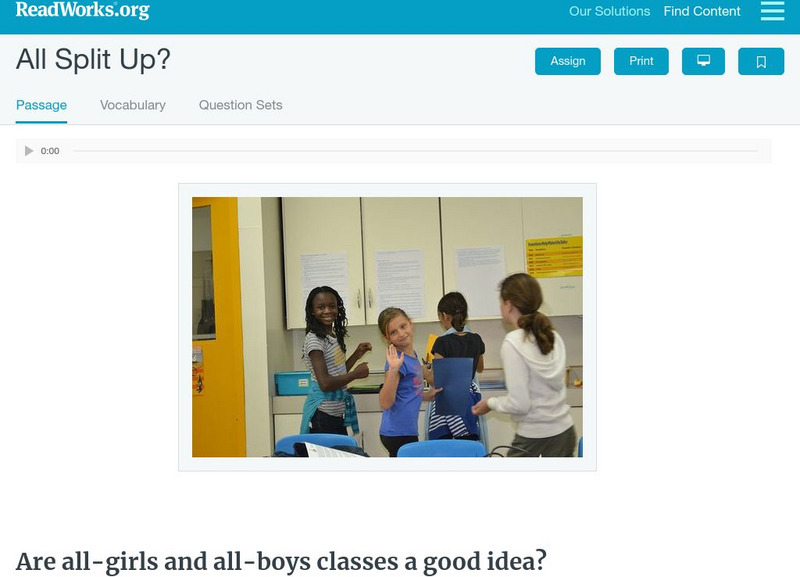 [Free Registration/Login Required] This informational text article presents both sides of the issue of coeducational classes. This passage is a stand-alone curricular piece that reinforces essential reading skills and strategies and...