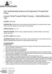 Get pumped about an activity with water pumps. The fifth of seven installments in the Understanding Science and Engineering unit has pupils learn how to make observations, record data, and create data displays. Each group measures the...