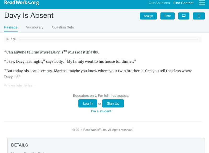 [Free Registration/Login Required] This literary text passage shares a short mystery. This passage is a stand-alone curricular piece that reinforces essential reading skills and strategies and establishes scaffolding for vocabulary...