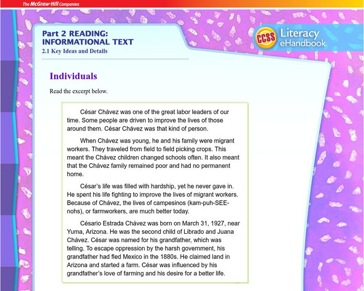 Mc Graw Hill:informational Text: Analyze Development of Text Elements:individuals