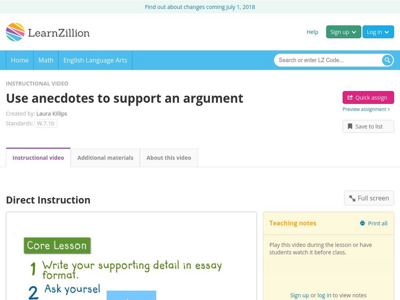 Learn Zillion: Elaborate on Supporting Details Using an Anecdote