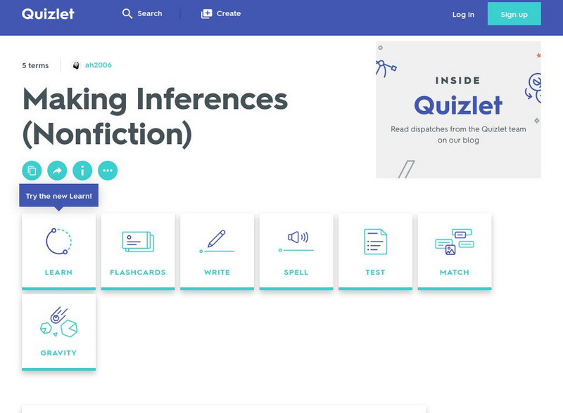 Quizlet: Making Inferences (Nonfiction)
