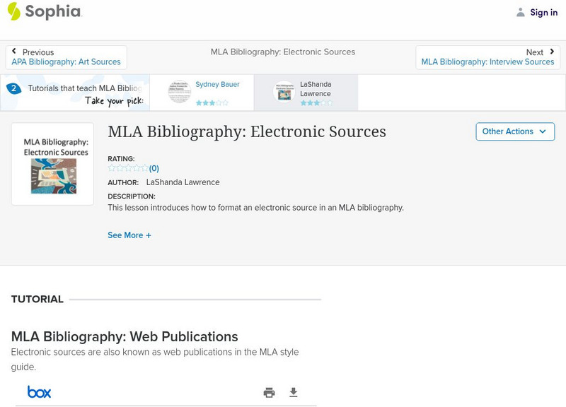 Sophia: Mla Bibliography: Electronic Sources: Lesson 2