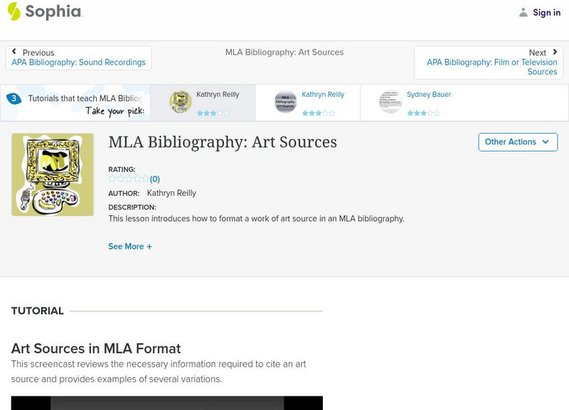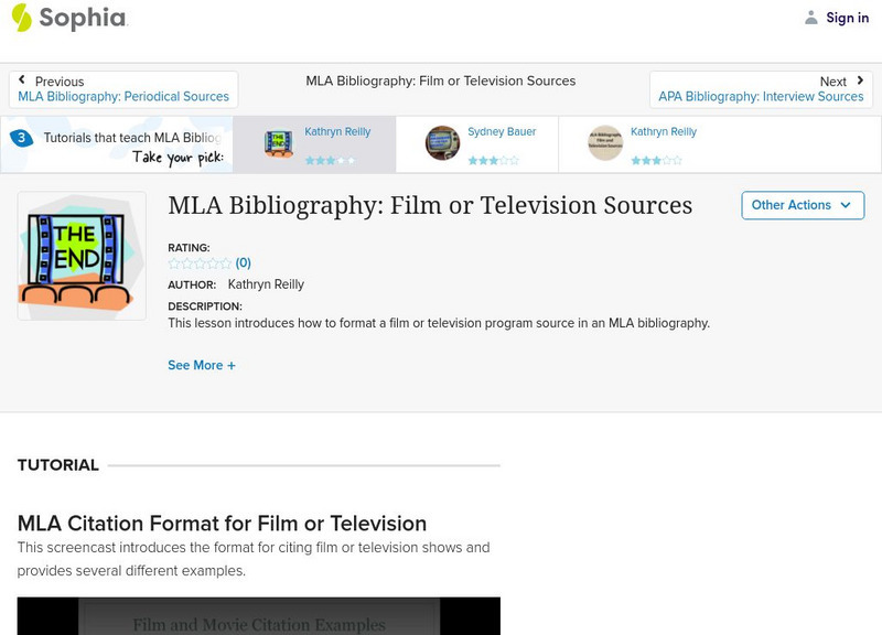 Sophia: Mla Bibliography: Film or Television Sources: Lesson 1
