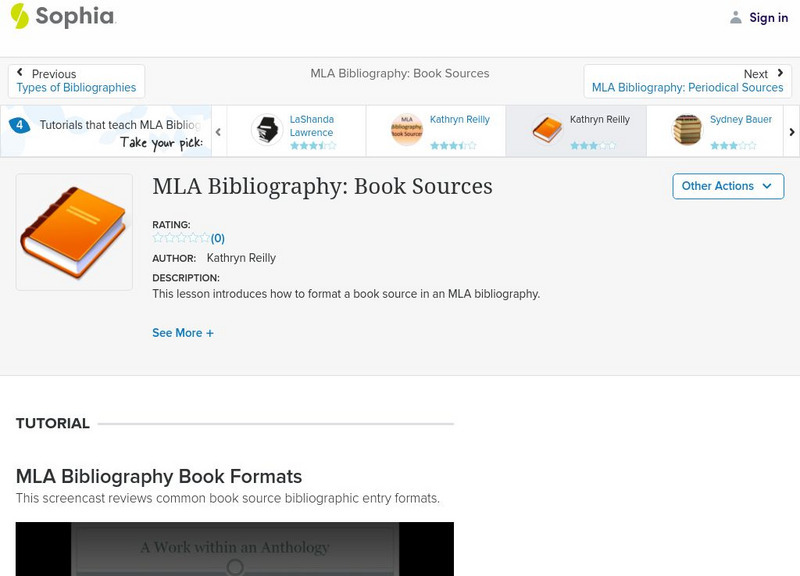 This screencast focuses on using MLA style to document various types of book sources. It offers examples of format and documentation for a variety of books such as single author, multiple authors, edited sources, etc. Real Player is...
