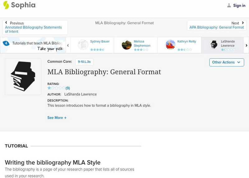 This video lesson explains the general format for an MLA bibliography using books as examples. Real Player is required.