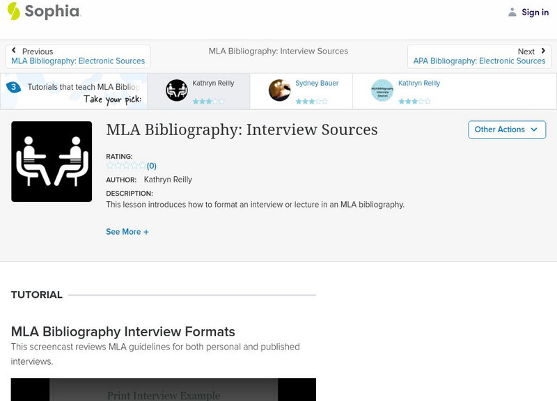 Sophia: Mla Bibliography: Interview Sources
