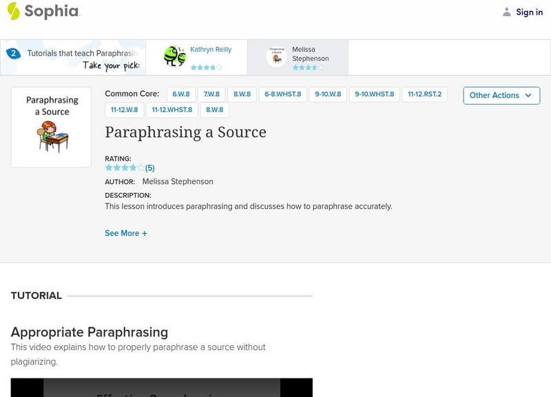 This video lesson focuses on paraphrasing a source to convey meaning but avoid plagiarism. It explains how to paraphrase and offers tips to help; it presents examples of unacceptable paraphrases that would be plagiarism and acceptable...
