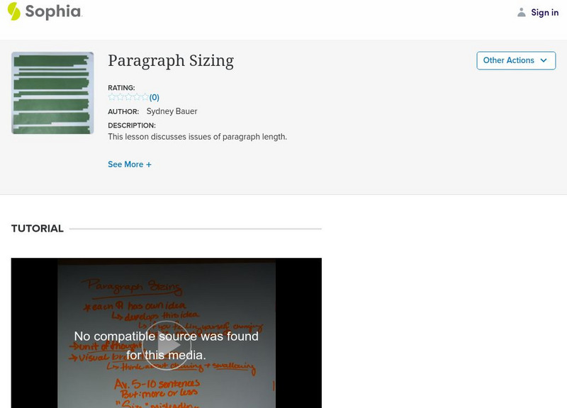 This video lesson focuses on paragraph size; paragraph size depends on units of ideas. Keep the reader in mind, and vary paragraph lengths. Real Player is required.