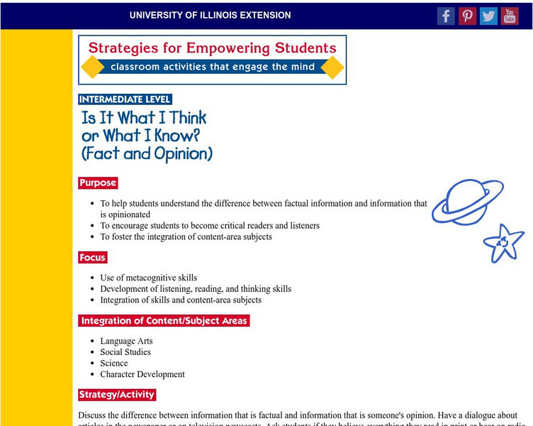 University of Illinois Extension: Is It What I Think or What I Know? (Fact or Opinion)