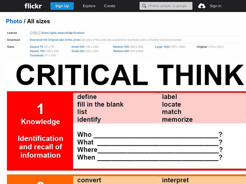 A downloadable critical thinking skills poster based on the original six levels of Bloom's taxonomy.