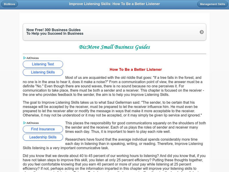 Article on the importance of listening in the business setting. Explains what listening is, gives guidelines, and lists barriers.