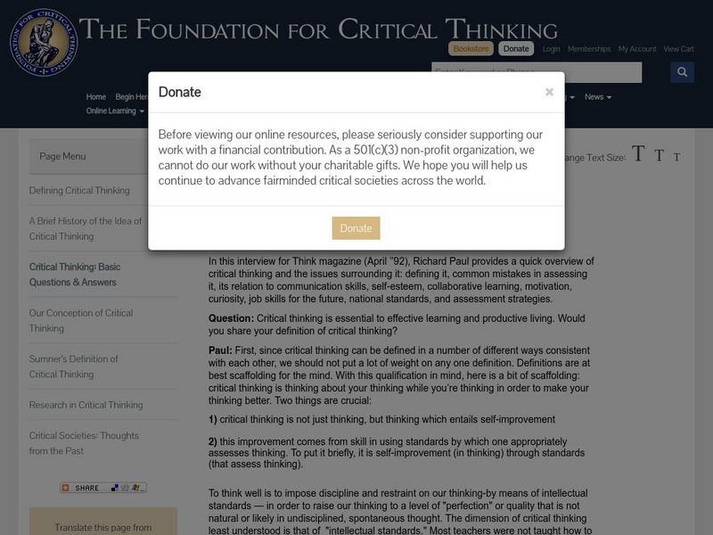 An interesting interview with Richard Paul discussing what critical thinking means. There are many insights as to what critical thinking involves and how it should be used in the classroom.
