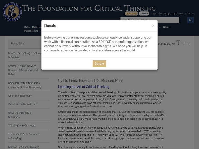This site from Access Excellence explores how, as an educator, you can incorporate critical thinking skills into the classroom. Content focuses on how to cover content so that students can grasp information, engage with the teacher, read...