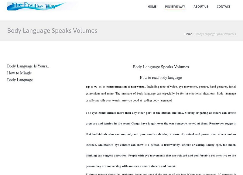 This article dicusses many aspects of nonverbal communication - eye contact, facial expressions, distance, paralanguage, and more. This is a very good introduction to the subject.