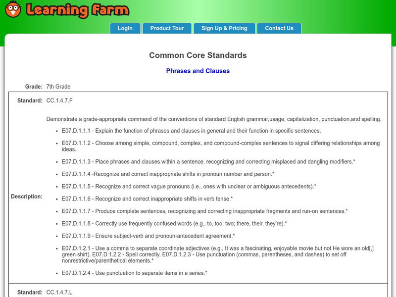 Learning Farm: Common Core Standards: Phrases and Clauses