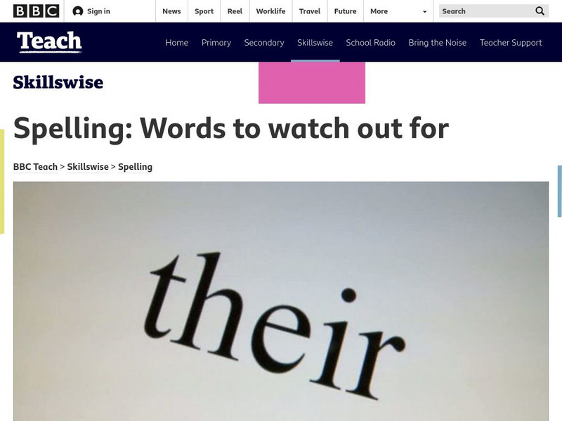A factsheet, a worksheet, a game, and a quiz are provided for teachers and students at this BBC spelling skills tutorial that shows you how to avoid confusing words.
