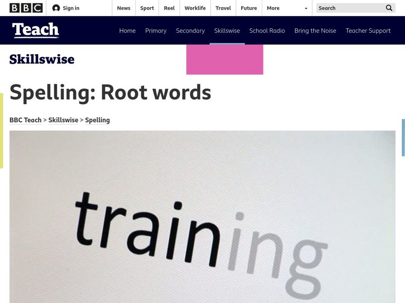 This Skillswise site focuses on root words. Included are a video about why learning how to identify root words is important, fact sheets and worksheets for instruction, and quizzes on the information presented. The Skillswise sites from...